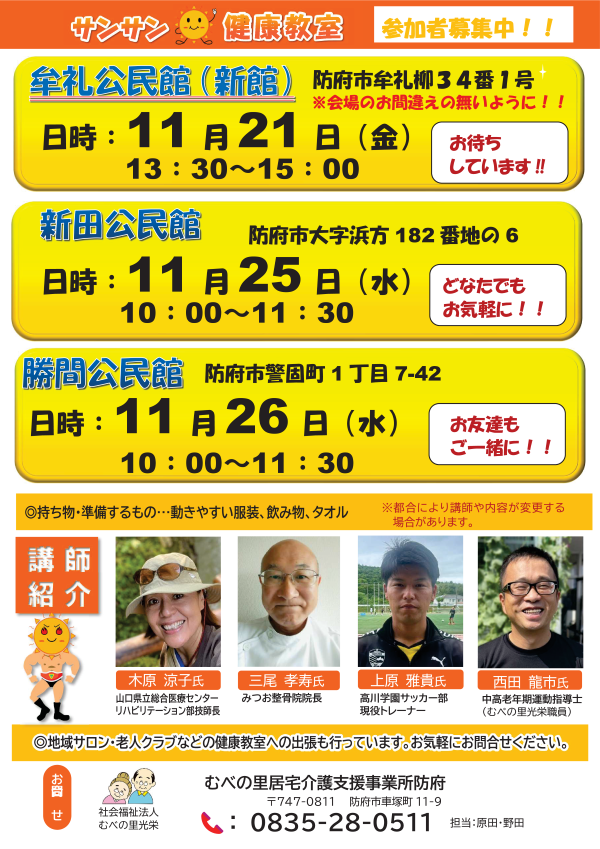 【防府居宅】サンサン健康教室、11月の開催日程