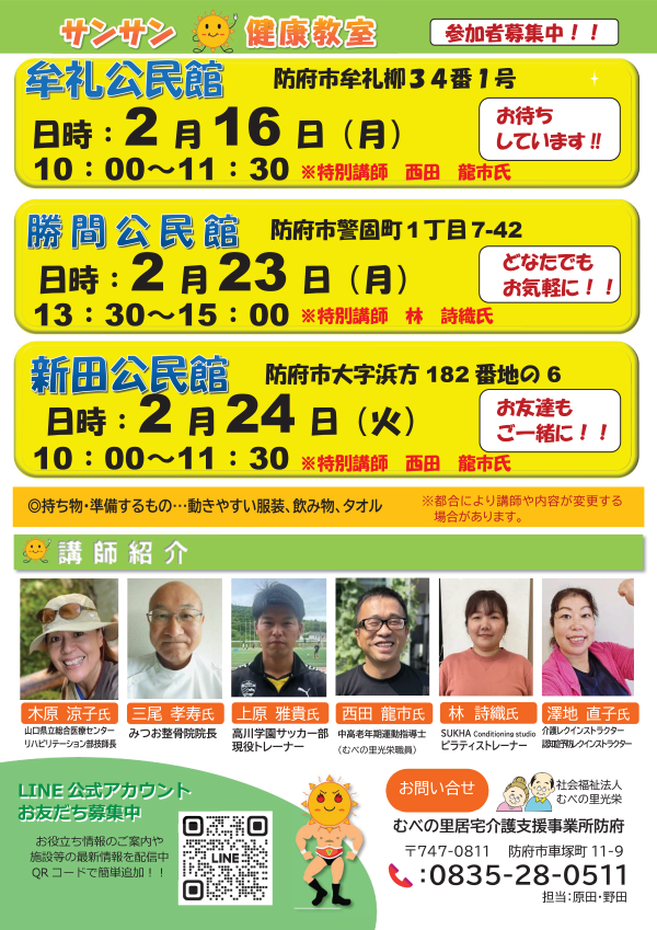 【防府居宅】サンサン健康教室、2026年2月の開催日程