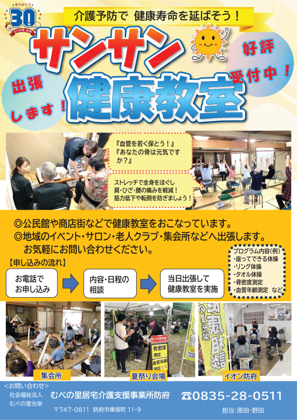 むべの里居宅介護支援事業所 防府では、毎回ご好評いただいている『サンサン健康教室』を開催しております。