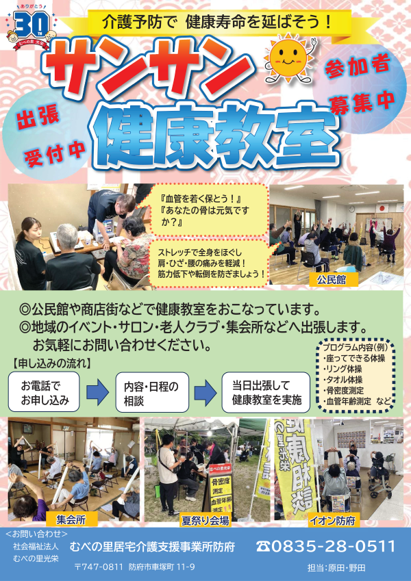 むべの里居宅介護支援事業所 防府では、毎回ご好評いただいている『サンサン健康教室』を開催しております。