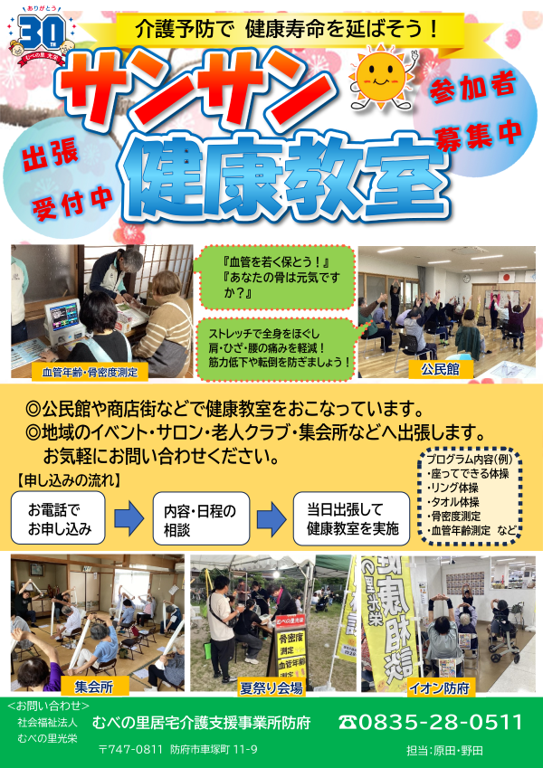 むべの里居宅介護支援事業所 防府では、毎回ご好評いただいている『サンサン健康教室』を開催しております。